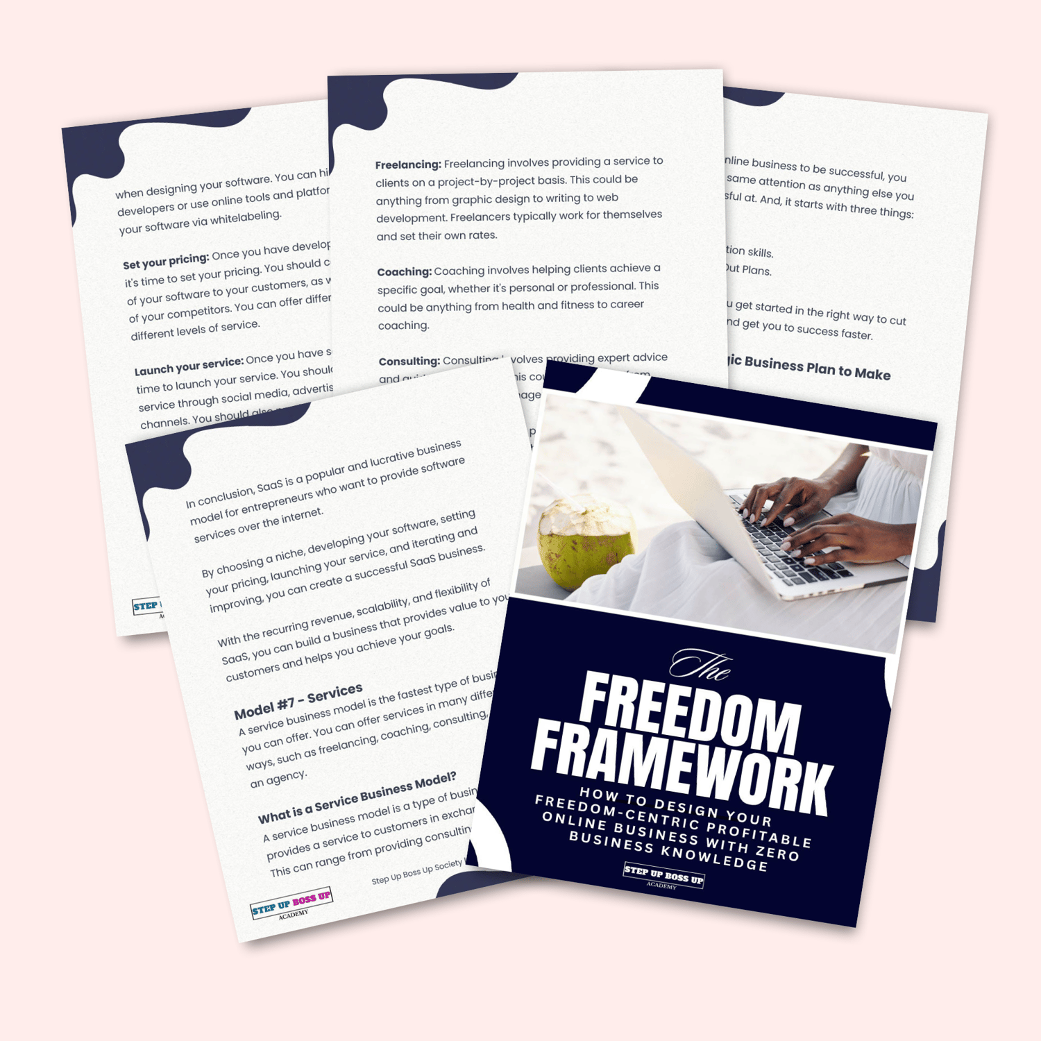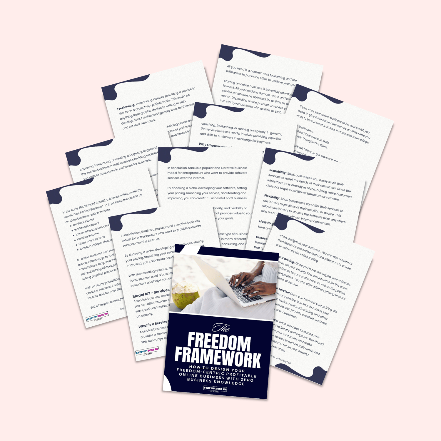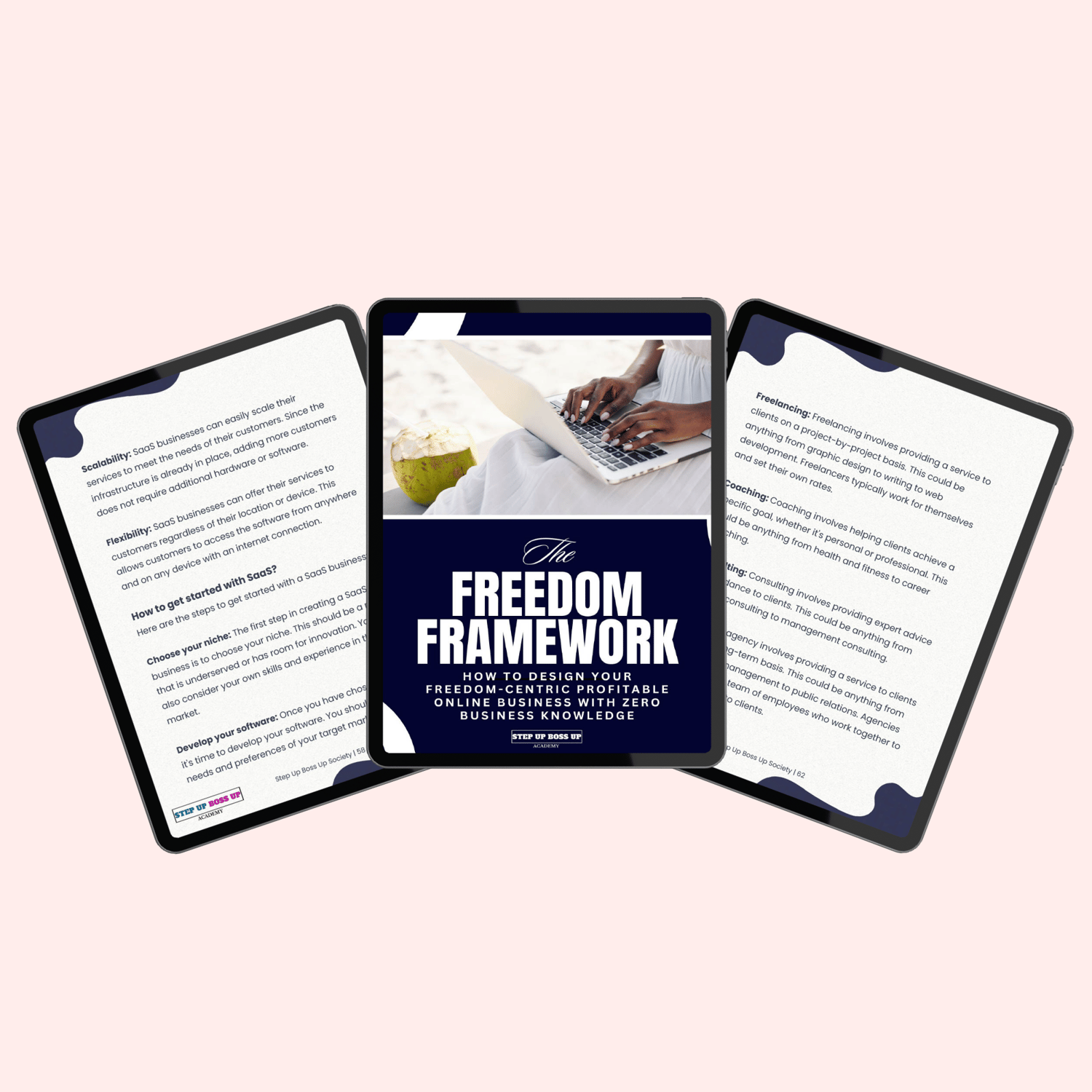 Grab The Freedom Framework eBook now and finally get a clear, confidence-boosting plan to start your business from scratch.