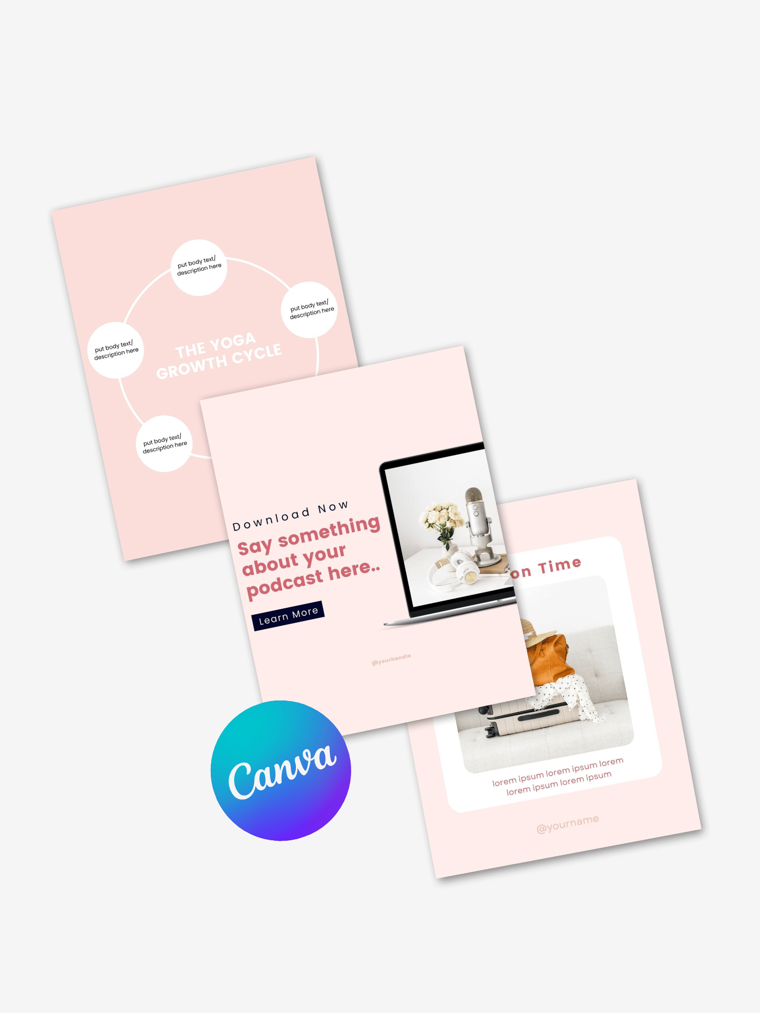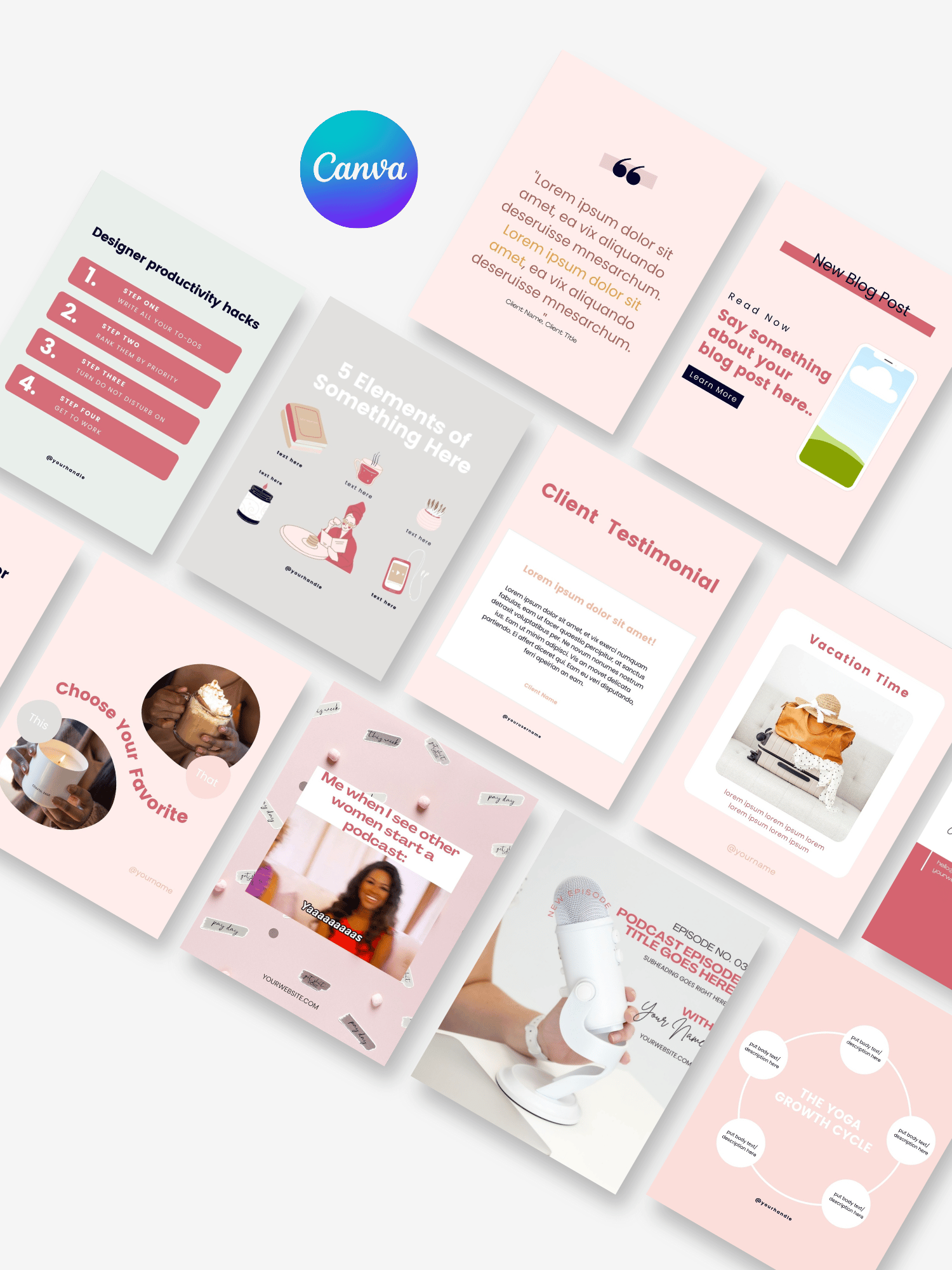 A pack of 68 ready-to-edit Canva templates (4:5 ratio) built to help new Coaches, Content Creators, and Digital Product Creators show up with clarity, confidence, and consistent design.
